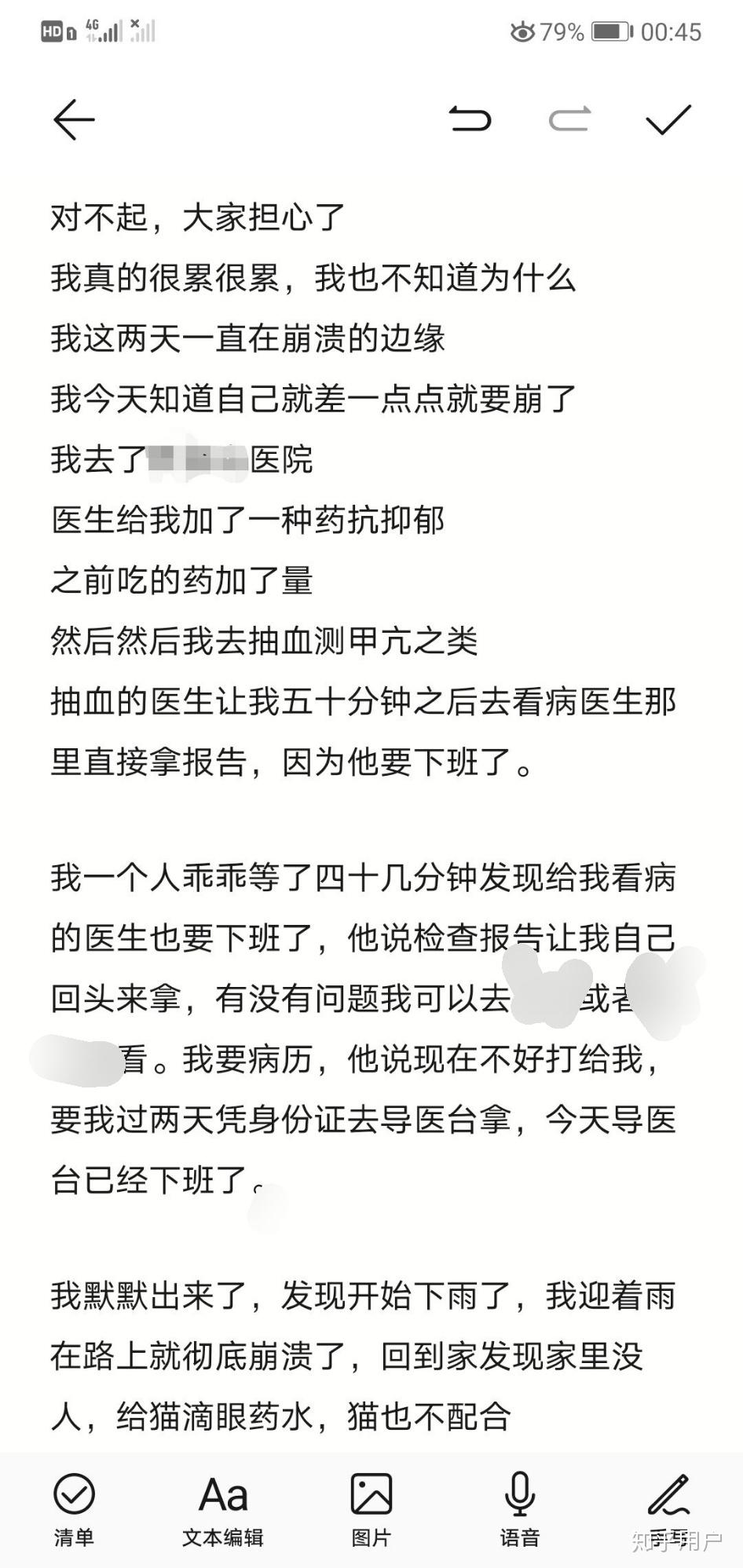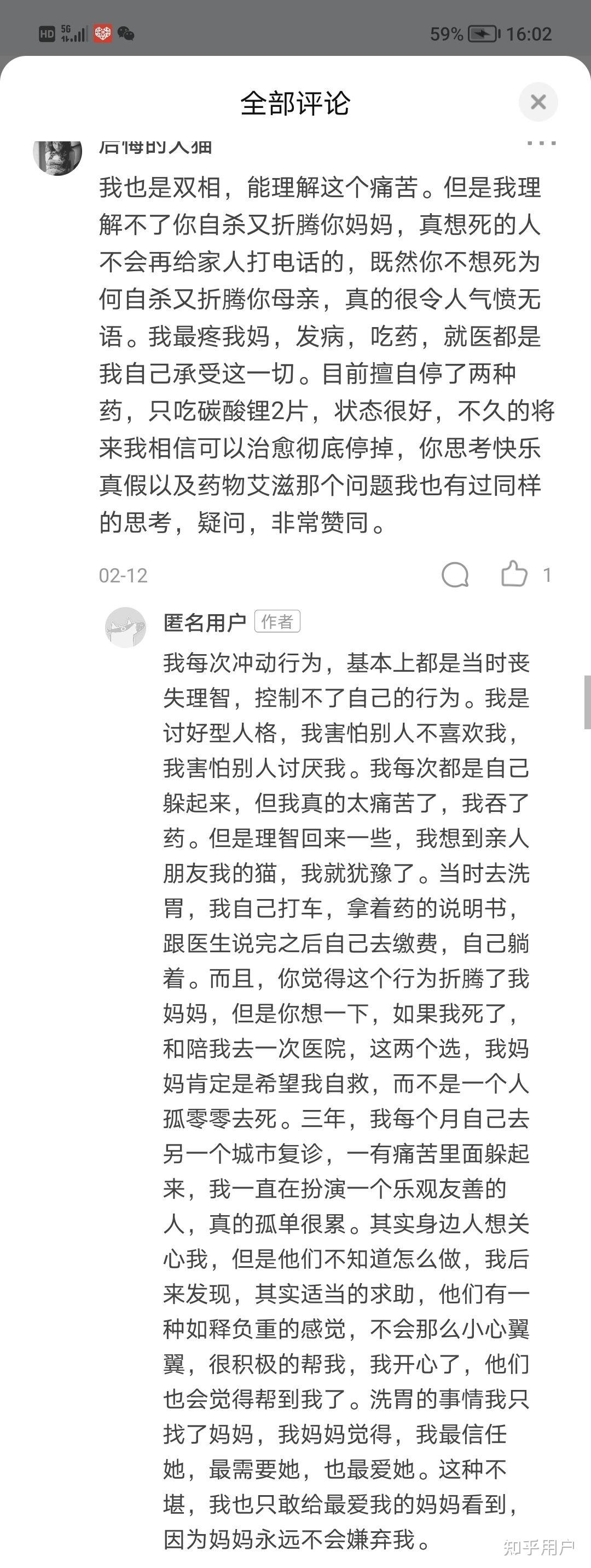 上面那个帖子回答的后续,就是这个女的后来又说了很多难听且扎心的话,还是那个好心病友一直在怼她,我当时抑郁情绪比较严重,我就把回答删除了,我不希望一打开知乎消息提示就是她的恶语相向