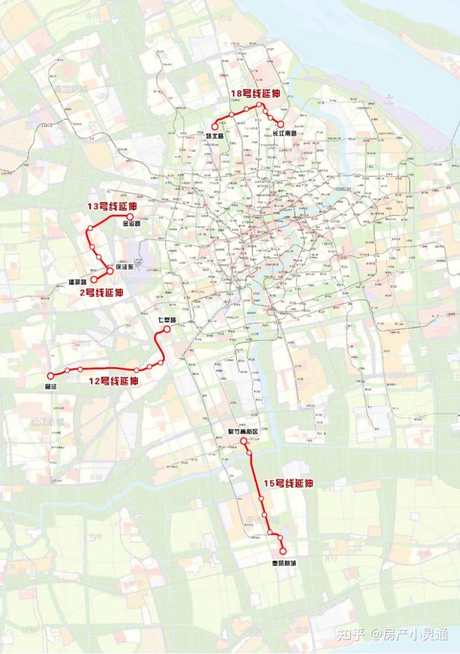 2号线西延伸:徐泾东站-潘祥路站,其中徐泾东站需新建端头井。12号线西延伸:七莘路站-洞泾站。主要沿沈砖公路、莘砖公路走行,与9号线在洞泾站合并。主要缓解松江地区东西向通行压力。13号线西延伸:金运路站-诸光路站。强化大虹桥中华漕镇南北向轨道交通的不足。15号线南延伸工程,起自现状紫竹高新区站,终至奉贤新城。弥补奉贤新城没有轨道交通服务的问题。18号线延伸:一期已经投入运营,二期为长江南路站-场北路站。东西方向串联起1号线、3号线、19号线,弥补宝山区东西向轨道交通匮乏的问题。轨道交通网络加密类:这一类线路主要是为了加强上海市“十四五”规划的重点板块之间的联系。