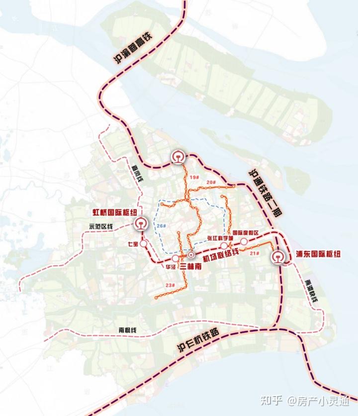 机场联络线西端的虹桥国际枢纽延伸出了嘉闵线、示范区线和现存的17号线,东端的浦东枢纽延伸出了两港快线(浦东国际枢纽-临港),并继续延伸出南枫线(临港-枫泾),远期还规划了东西联络线(浦东国际枢纽-松江南站)。机场联络线的“三林南”站还是市域线奉贤线的起点,穿越浦江地区到达奉贤新城。从交通格局的角度来说,机场联络线未来在“市域线”网络中的地位应当可以比肩2号线在上海地铁网络中的地位。想要在浦东置业的朋友们可以重点关注机场联络线沿线的区域,比如七宝、三林南、华泾等站点。另外闵行区、嘉定区的站点周边也都有不同程度的利好,大家也可以重点关注起来。