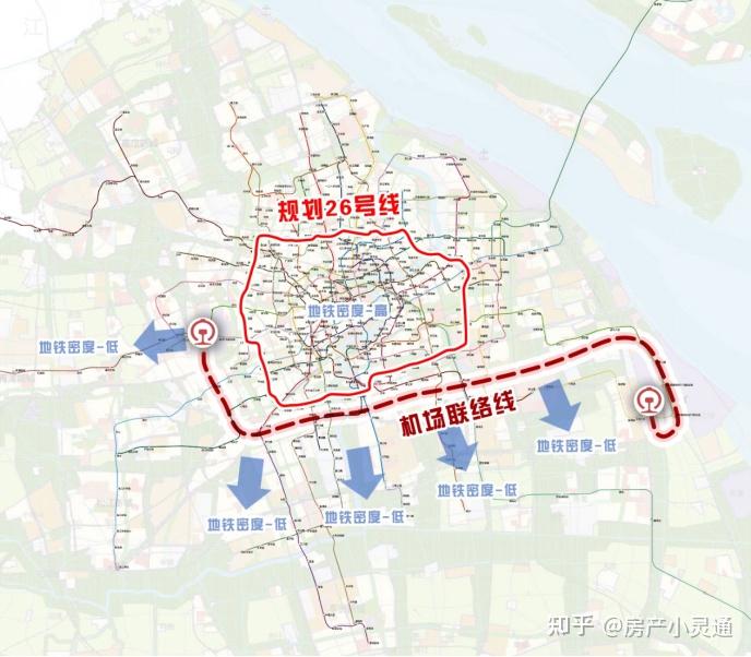 提升效率是建设机场联络线非常直接的原因。除了提升效率,机场联络线还有另一个作用:那就是构建新的城市轨道交通格局。从下面这张图可以看出,机场联络线完全“绕开”了上海的主要建设密集区,大致将上海分为了东北和西南两个部分。