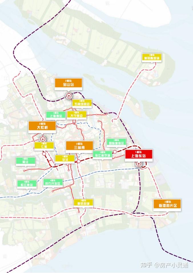 之一梯队:上海东站第二梯队:大虹桥、宝山站、临港新片区、三林南第三梯队:七宝、华泾、奉贤新城、崇明陈家镇、大宁周边、五角场周边第四梯队:松江南站、洞泾站、上海西站、张江科学城、国际度假区、闵行开发区