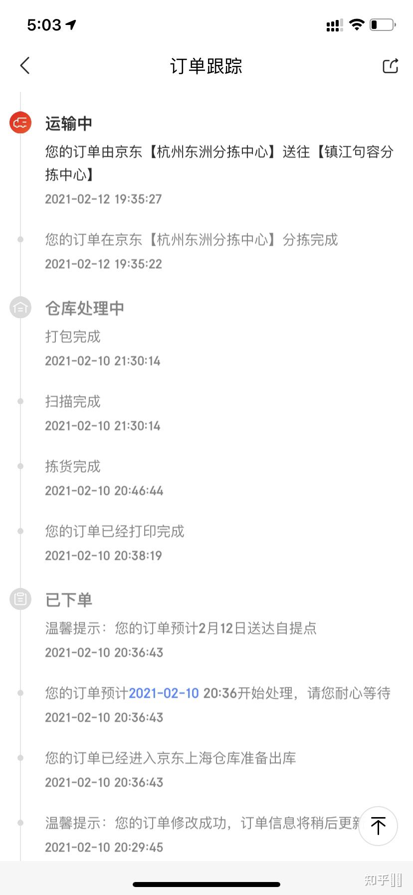 而今天再看,好家伙,又回到镇江了,但是依旧不动,不动啊不动,甚至说是没有往下一个站点的信息,之前吧快递在杭州两个站点,从一个站点道另一个要一天,嗯,人家白天不走,估计白天忌出行,同样的,到了镇江也是,白天不走,只能晚上走,只能催单啊,催单之后给我发