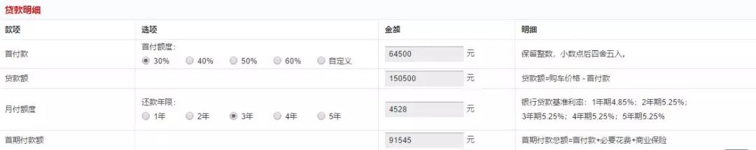 如果这两种方案无法满足自身需求的话,也可以选择贴息的贷款。比如说我想贷款15万分三年还贷,这个就是有利息的,不过厂家目前提供贴息,在补贴完以后,利息是在3%左右,也就是4500元左右,再加上3000元的手续费,一共7500元,分到三年里来看也并不算高。