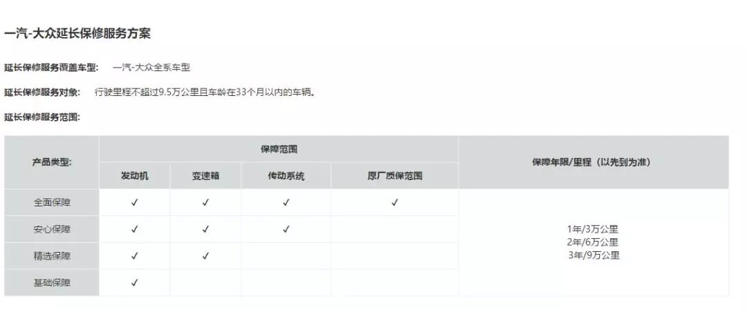 如果你非常认可4S店的服务的话,还可以选择延保服务,当然你的车辆必须是在9.5万公里或33个月车辆之内选择延保,延保的方案有三种,分别是一年3万公里、两年6万公里和三年9万公里,各地的价格可能会略有出入,大家可以咨询一下各地的经销商。