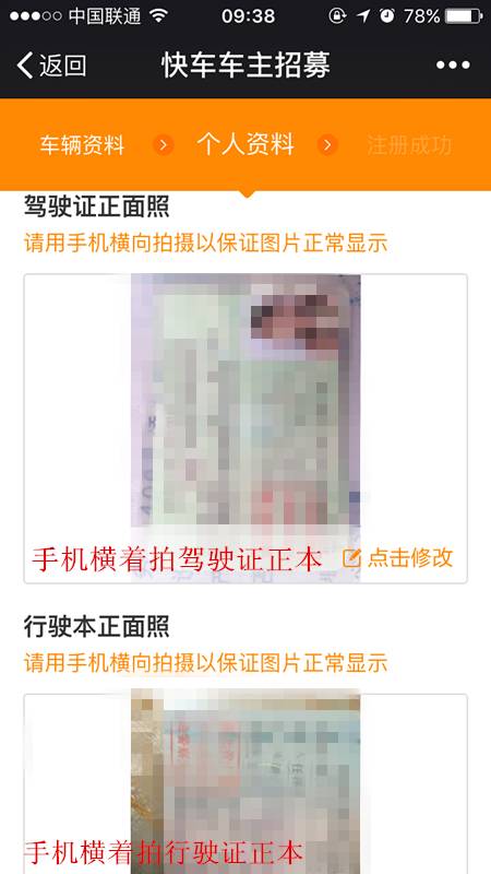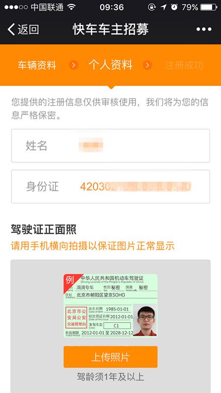 第五步、手机上传驾驶证(正本)和*(正本)照片。