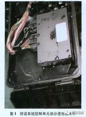 询问驾驶人得知,该车前段时间因天窗下水管脱落造成车内进水,而维修人员在将天窗修复后,仅对地毯进行了烘晒,而没有及时清理舒适系统控制单元内的积水。