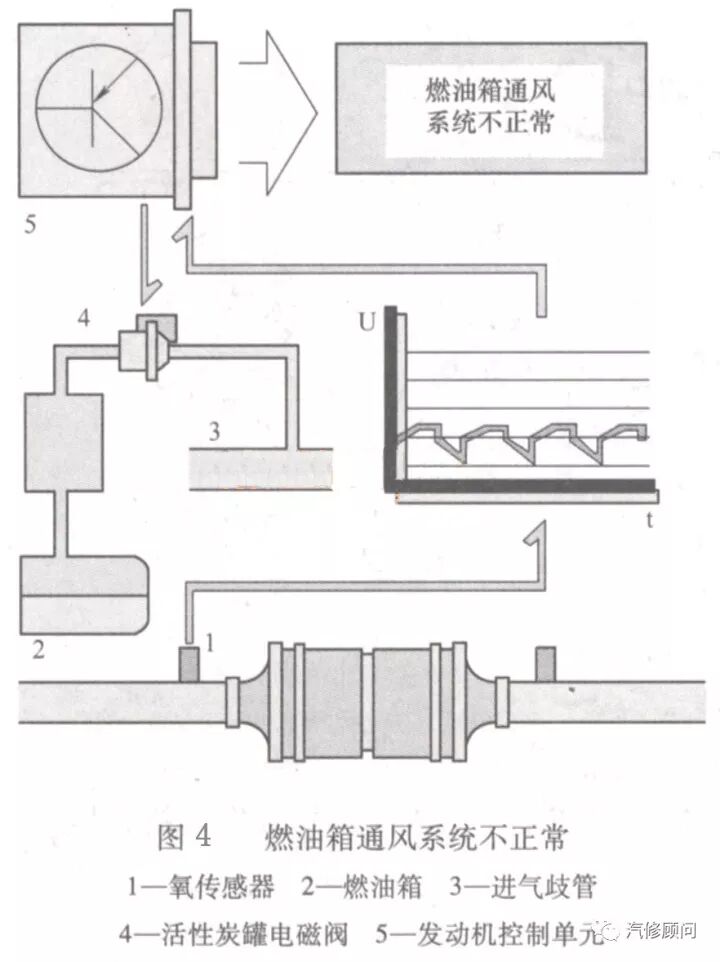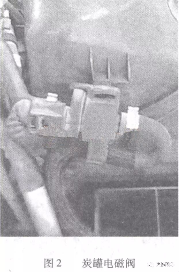 了解了燃油箱通风系统的工作原理,就进一步缩小了故障范围。对电磁阀的供电和控制线路进行测量,未见异常,于是分析故障可能是由电磁阀自身或相关的管路出现故障造成的。