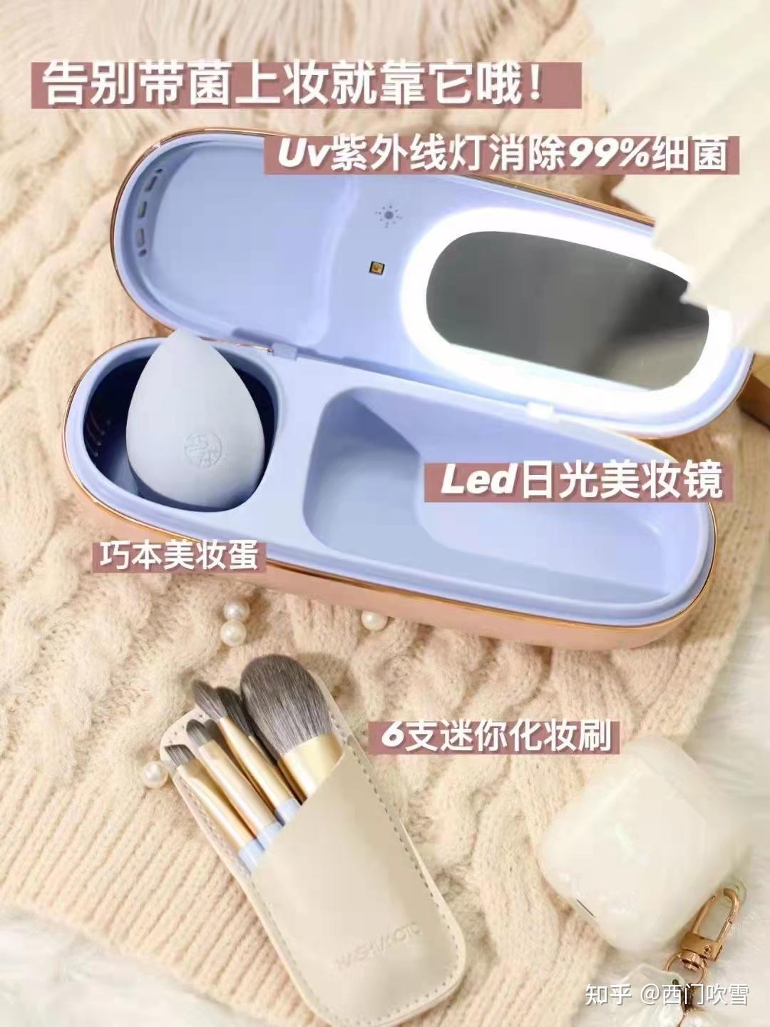 还有LED日光补妆镜和化妆刷的紫外线杀毒区。一盒就可以搞掂化妆工具的烘干+消毒+收纳!简直就是一物多用!