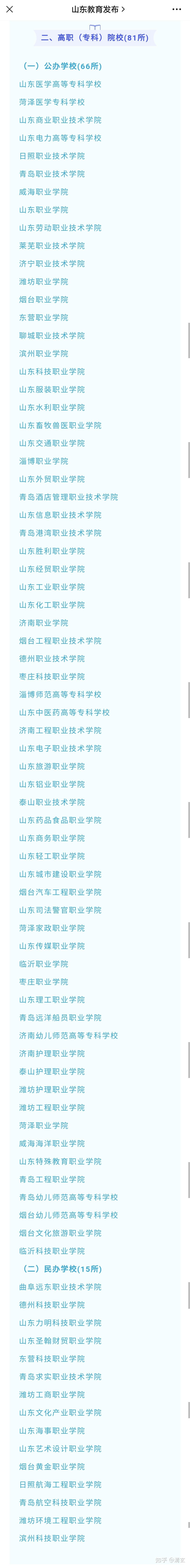 三、山东官网公布院校情况