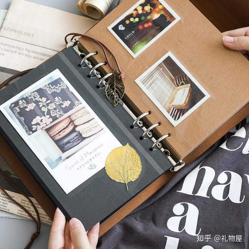 复古造型的DIY手工活页相册,真是不要复古,太好看,手工制作,自然纹理手感足,它的侧面佩戴复古五金树叶,皮绳绑带设计,携带方便。之一张附档案袋式信封,底部内页附一张收纳袋活页夹,可自由更换内页。买它,绝对不会错!