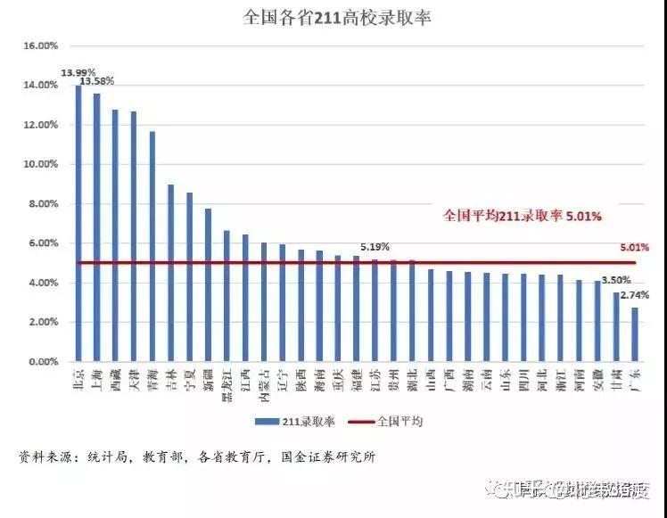 从211录取率来看,全国平均大约是5.01%(这个是所有高考考生为分母,而不是所有高考适龄人口做分母)。