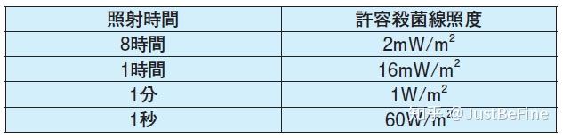 2,紫外线杀菌灯的功率和照射时间这两个参数是杀菌的关键。一般30W的紫外灯使用在10㎡以下的房间,照射时间需要≥30分钟。最后要提醒一下小伙伴们,大部分紫外线杀菌灯的辐射强度会对人的皮肤、眼睛造成严重伤害,下表是人体允许的紫外灯照射时间: